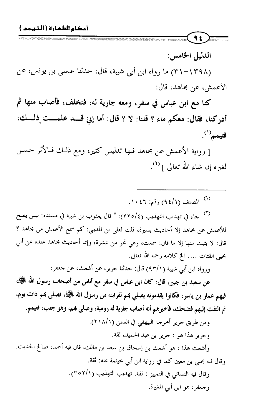 (1398 - 31) ما رواه ابن أبي شيبة، قال: حدثنا عيسى بن يونس، عن الأعمش، عن مجاهد، قال: