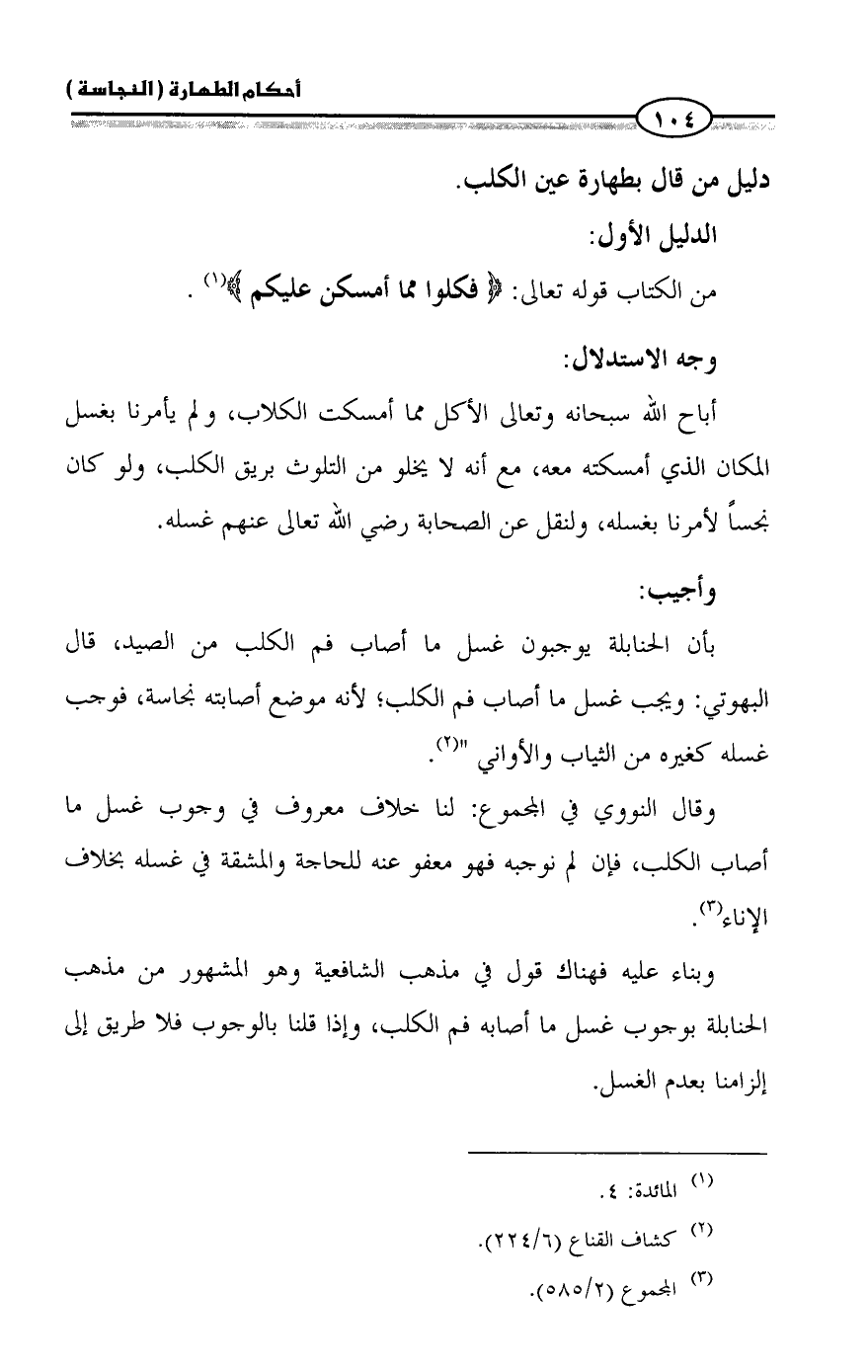 بأن الحنابلة يوجبون غسل ما أصاب فم الكلب من الصيد، قال البهوتي: ويجب غسل ما أصاب فم الكلب؛ لأنه موضع أصابته نجاسة، فوجب غسله كغيره من الثياب والأواني " (¬2).