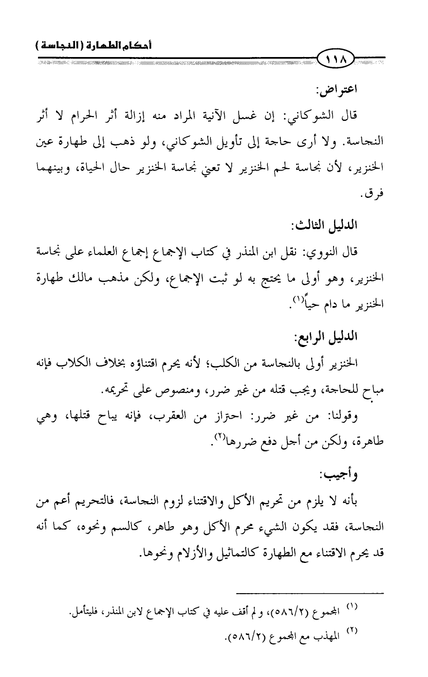 قال النووي: نقل ابن المنذر في كتاب الإجماع إجماع العلماء على نجاسة الخنزير، وهو أولى ما يحتج به لو ثبت الإجماع, ولكن مذهب مالك طهارة الخنزير ما دام حياً (¬1).