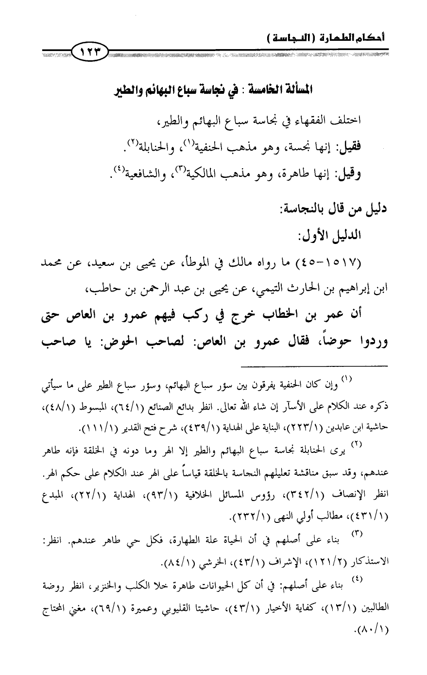 (¬3) بناء على أصلهم في أن الحياة علة الطهارة، فكل حي طاهر عندهم. انظر: الاستذكار (2/ 121)، الإشراف (1/ 43)، الخرشي (1/ 84).