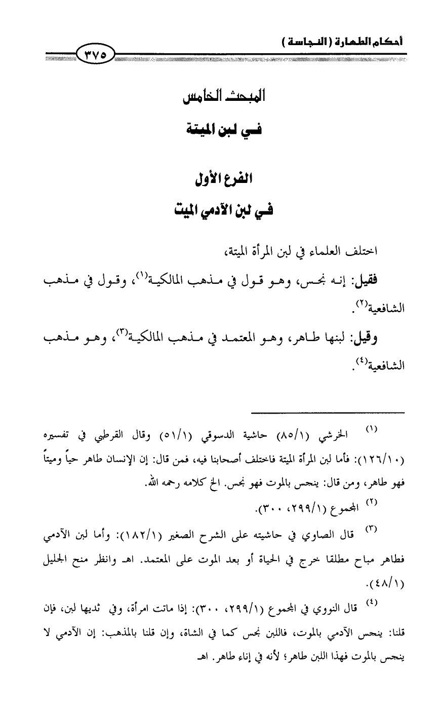 (¬1) الخرشي (1/ 85) حاشية الدسوقي (1/ 51) وقال القرطبي في تفسيره (10/ 126): فأما لبن المرأة الميتة فاختلف أصحابنا فيه، فمن قال: إن الإنسان طاهر حياً وميتاً فهو طاهر، ومن قال: ينجس بالموت فهو نجس. الخ كلامه رحمه الله.