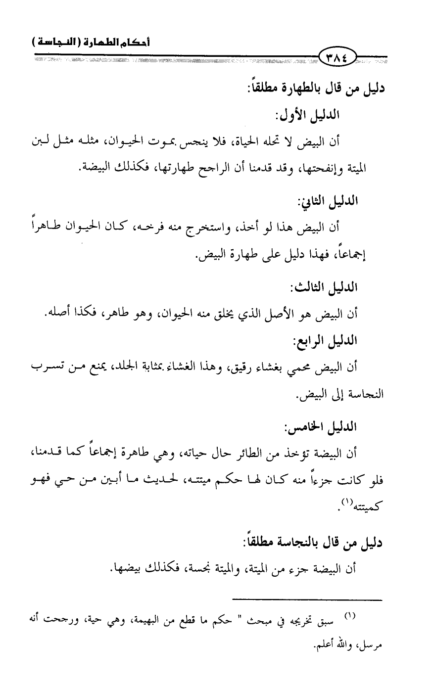 أن البيض هذا لو أخذ، واستخرج منه فرخه، كان الحيوان طاهراً إجماعاً، فهذا دليل على طهارة البيض.