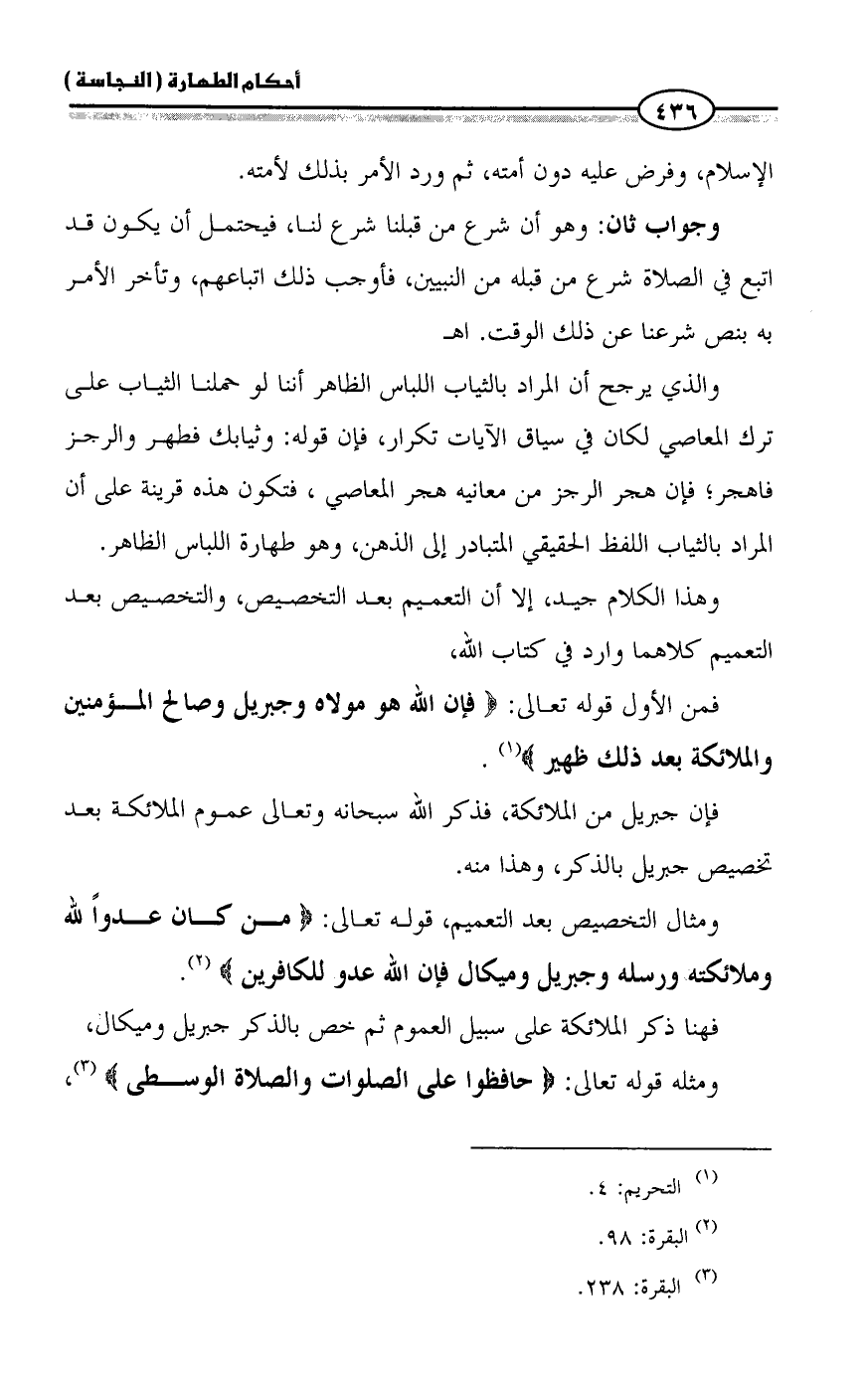 وهذا الكلام جيد، إلا أن التعميم بعد التخصيص، والتخصيص بعد التعميم كلاهما وارد في كتاب الله،