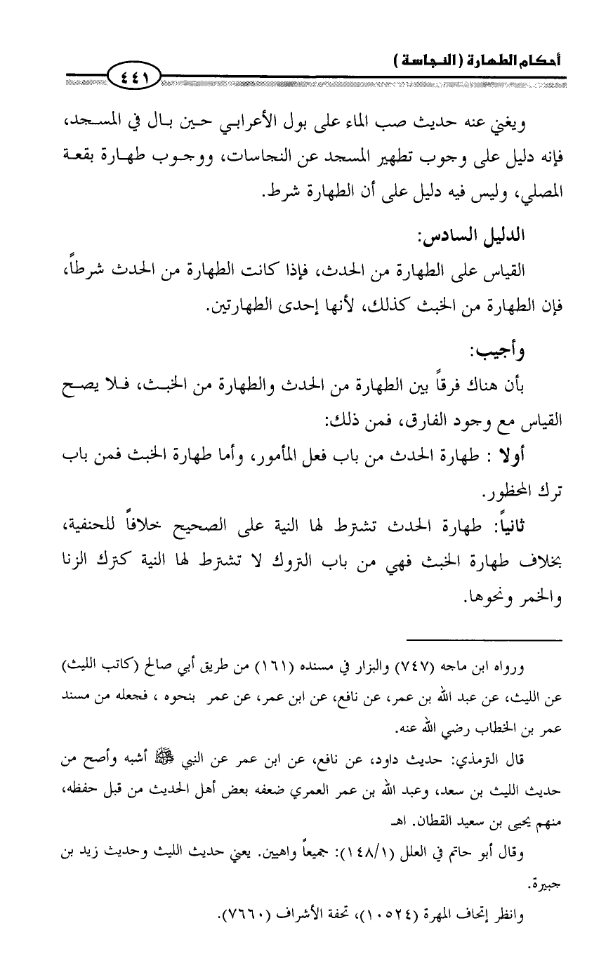 ثانياً: طهارة الحدث تشترط لها النية على الصحيح خلافاً للحنفية، بخلاف طهارة الخبث فهي من باب التروك لا تشترط لها النية كترك الزنا والخمر ونحوها.
