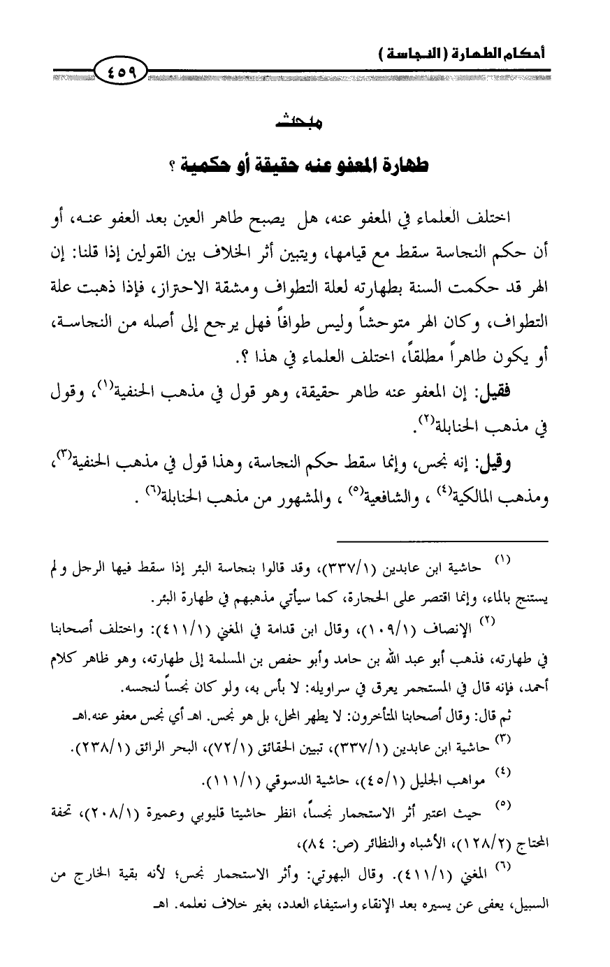 طهارة المعفو عنه حقيقة أو حكمية؟