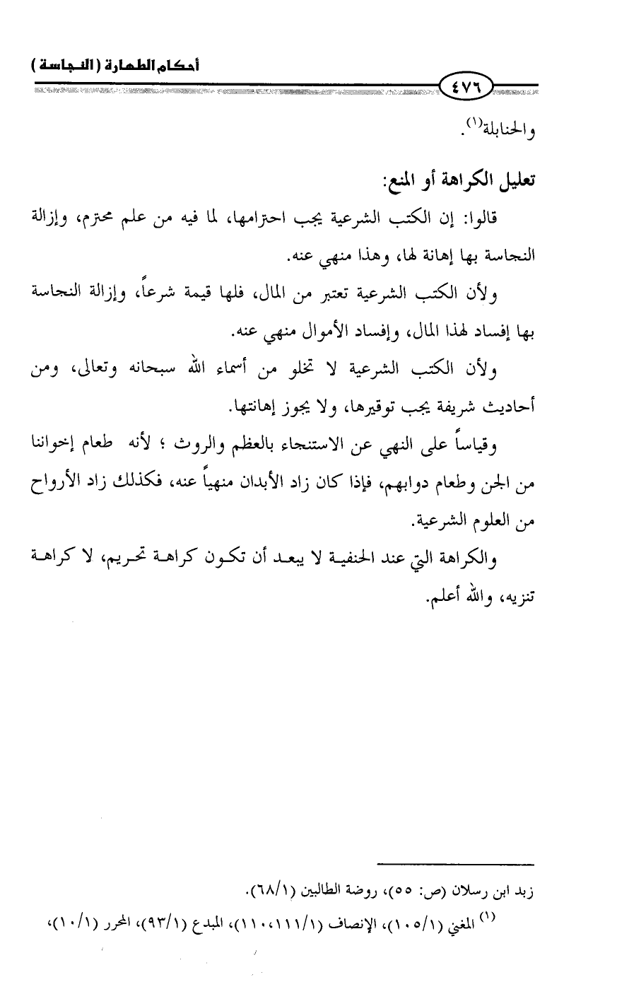 (¬1) المغني (1/ 105)، الإنصاف (1/ 110،111)، المبدع (1/ 93)، المحرر (1/ 10)،