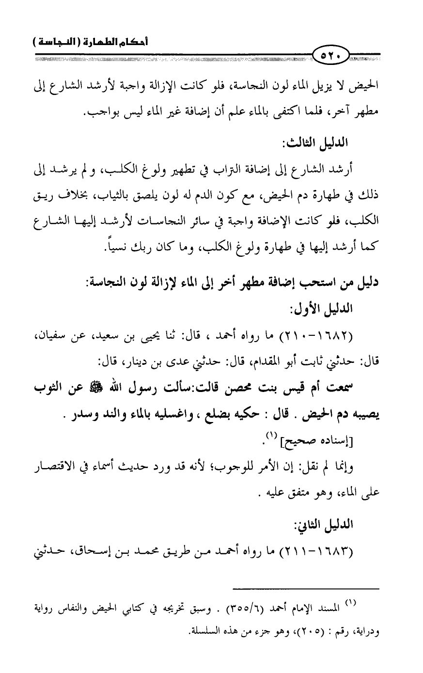 (¬1) المسند الإمام أحمد (6/ 355). وسبق تخريجه في كتابي الحيض والنفاس رواية ودراية، رقم: (205)، وهو جزء من هذه السلسلة.