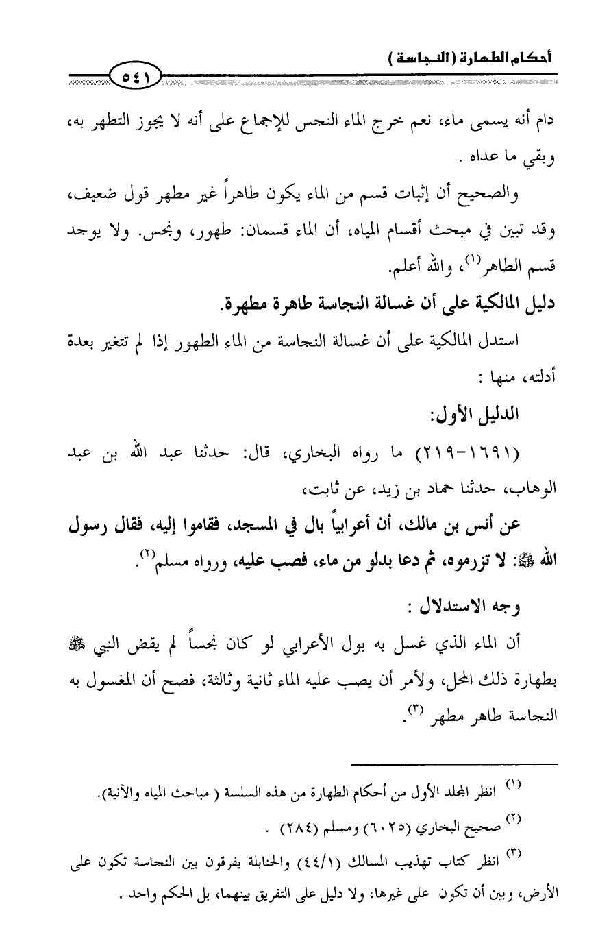 (¬3) انظر كتاب تهذيب المسالك (1/ 44) والحنابلة يفرقون بين النجاسة تكون على الأرض، وبين أن تكون على غيرها، ولا دليل على التفريق بينهما، بل الحكم واحد.