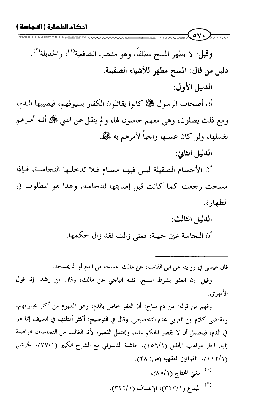 دليل من قال: المسح مطهر للأشياء الصقيلة.
