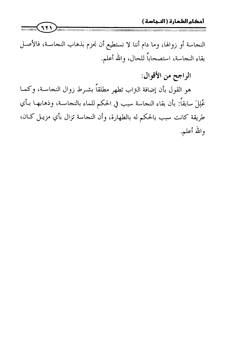 النجاسة أو زوالها، وما دام أننا لا نستطيع أن نجزم بذهاب النجاسة، فالأصل بقاء النجاسة، استصحاباً للحال، والله أعلم.