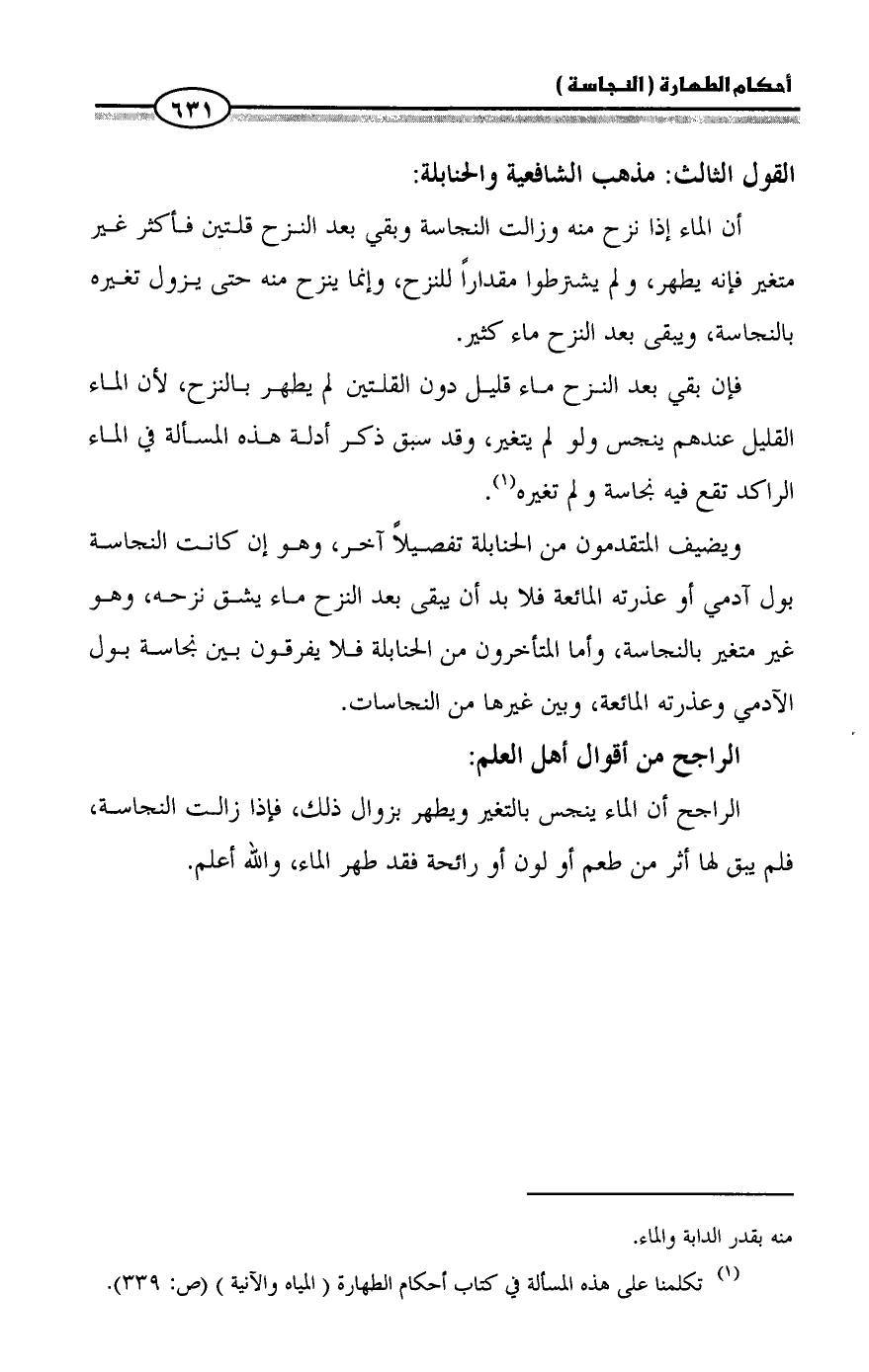 (¬1) تكلمنا على هذه المسألة في كتاب أحكام الطهارة (المياه والآنية) (ص: 339).