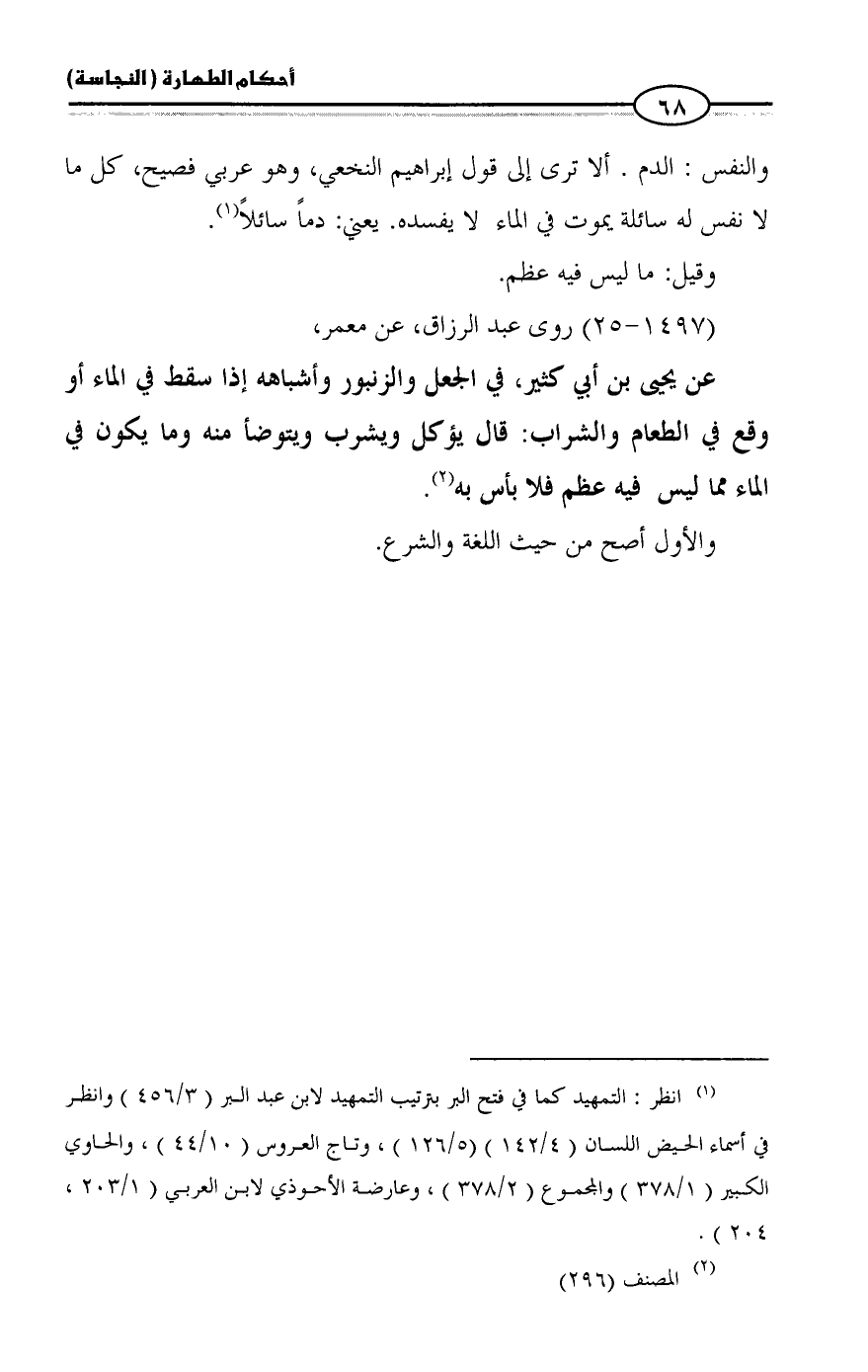 (¬1) انظر: التمهيد كما في فتح البر بترتيب التمهيد لابن عبد البر (3/ 456) وانظر في أسماء الحيض اللسان (4/ 142) (5/ 126)، وتاج العروس (10/ 44)، والحاوي الكبير (1/ 378) والمجموع (2/ 378)، وعارضة الأحوذي لابن العربي (1/ 203، 204).