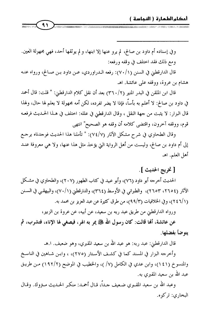 قال الدارقطني في السنن (1/ 70): رفعه الدراوردي، عن داود بن صالح، ورواه عنه هشام بن عروة، ووقفه على عائشة. اهـ