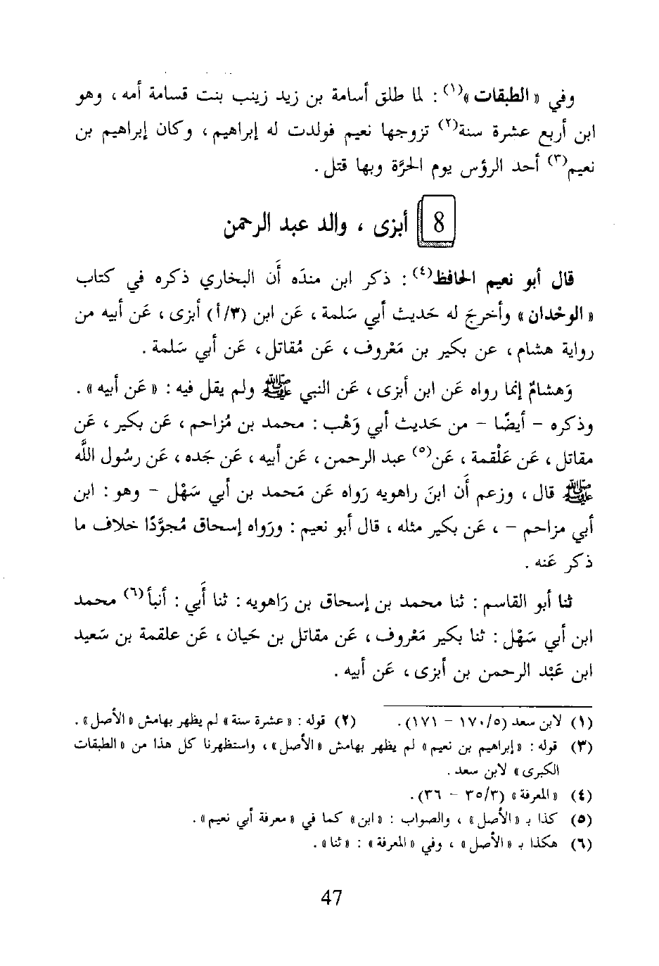 (¬3) قوله: "إبراهيم بن نعيم" لم يظهر بهامش "الأصل"، واستظهرنا كل هذا من "الطبقات الكبرى" لابن سعد.