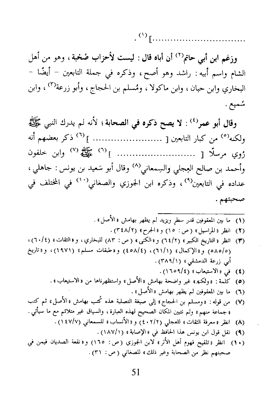 (¬10) انظر "تلقيح فهوم أهل الأثر" لابن الجوزي (ص: 165) و"نقعة الصديان فيمن في صحبتهم نظر من الصحابة وغير ذلك" للصغاني (ص: 31).