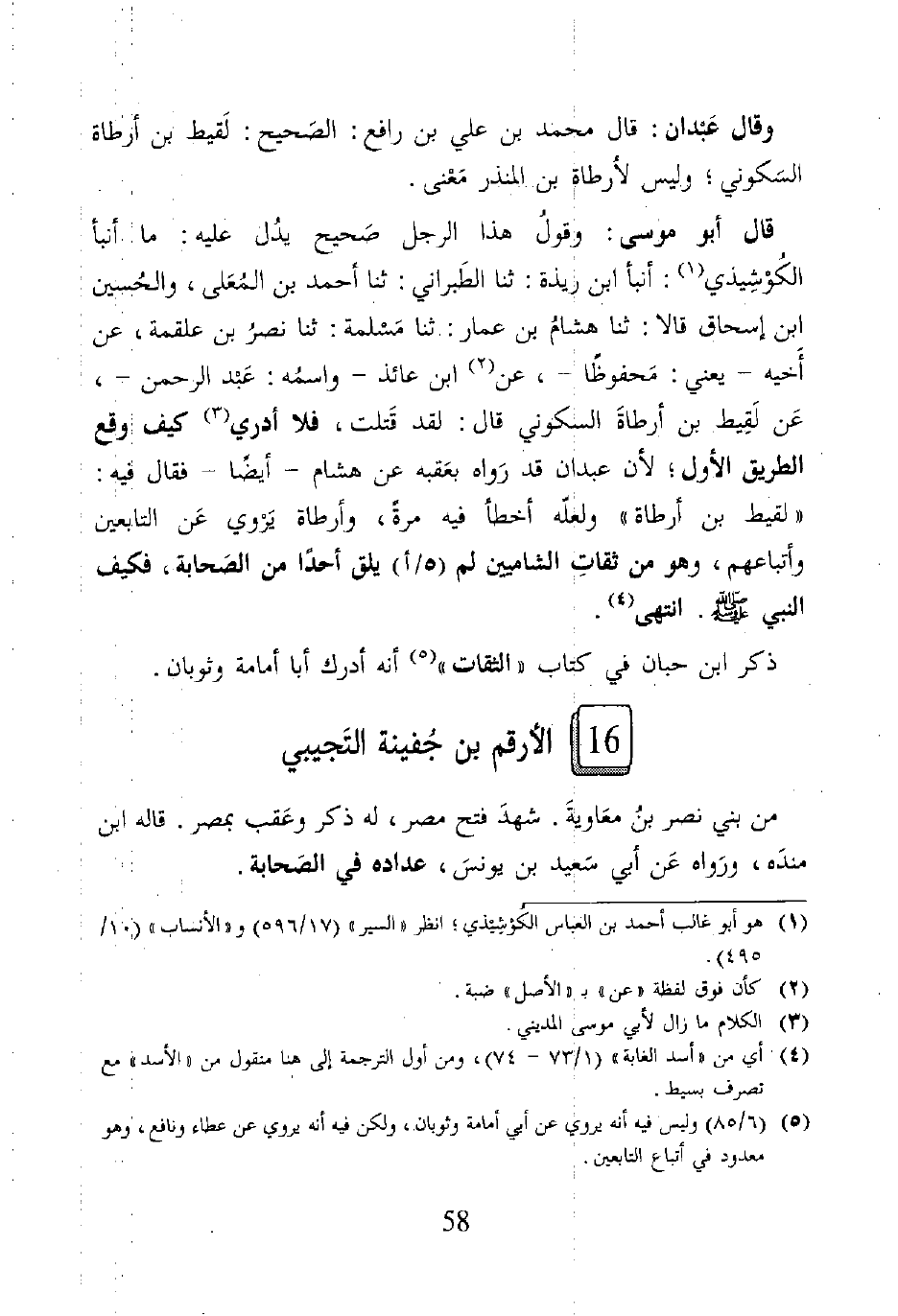 قال أبو موسى: وقولُ هذا الرجل صَحيح يدُل عليه: ما أنبأ الكُوشِيذي (¬1): أنبأ ابن ريذة: ثنا الطَّبراني: ثنا أحمد بن المُعَلى، والحسين بن إسحاق قالا: ثنا هشامُ بن عمار: ثنا مَسْلمة: ثنا نصرُ بن علقمة، عن أَخيه -يعني: مَحفوظًا-، عن (¬2) ابن عائذ -واسمه: عَبد الرحمن-، عَن لَقيط بن أرطاةَ السكوني قال: لقد قَتلت، فلا أدري (¬3) كيف وقع الطريق الاُول؛ لأن عبدان قد رَواه بعقبه عن هشام -أيضًا- فقال فيه: "لقيط بن أرطاة" ولعلَّه أخطأ فيه مرة، وأرطاة يَروي عَن التابعين وأتباعهم، وهو من ثقاتِ الشاميين لم يلق أحدًا من الصَّحابة، فكيف النبي - صلى الله عليه وسلم -. انتهى (¬4).