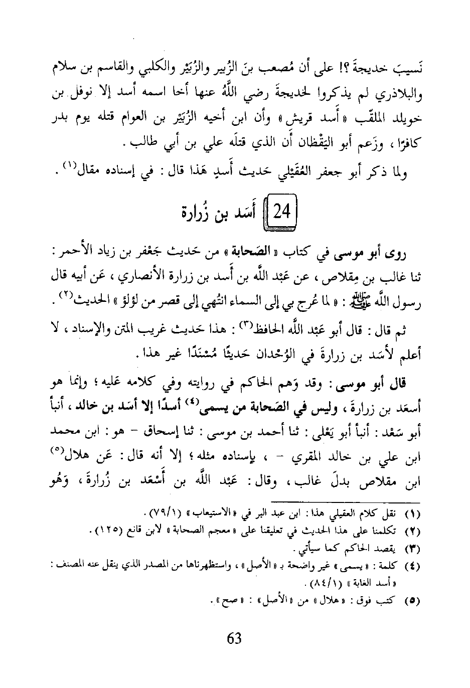 قال أبو موسى: وقد وَهم الحاكم في روايته وفي كلامه عَليه؛ وإنما هو أسعد بن زرارةَ، وليس في الصَّحابة من يسمى (¬4) أسدًا إلا أسَد بن خالد، أنبأ أبو سَعْد: أنبأ أبو يَعْلى: ثنا أحمد بن موسى: ثنا إسحاق -هو: ابن محمد بن علي بن خالد المقري-، بإسناده مثله، إلا أنه قال: عَن هلال (¬5) بن مقلاص بدلَ غالب، وقال: عَبد الله بن أَسعَد بن زُرارةَ، وَهُو