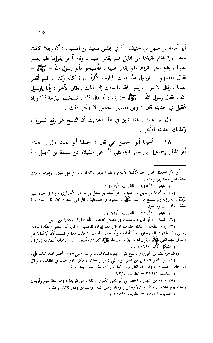 18 - حَدَّثَنَا أَبُو عُبَيْدٍ قَالَ: حَدَّثَنَا أَبُو الْمُنْذِرِ إِسْمَاعِيلُ بْنُ عُمَرَ الْوَاسِطِيُّ، عَنْ سُفْيَانَ، عَنْ سَلَمَةَ بْنِ كُهَيْلٍ، -[16]- عَنْ ذَرٍّ، عَنْ عَبْدِ الرَّحْمَنِ بْنِ أَبْزَى قَالَ: صَلَّى رَسُولُ. . . . §مَوْضِعُهُ، فَهَذَا هُوَ الْمُسْتَعْمَلُ فِي كَلَامِ الْعَوَامِ، وَلَهُ مَعَ هَذَا شَاهِدٌ مِنَ الْقُرْآنِ