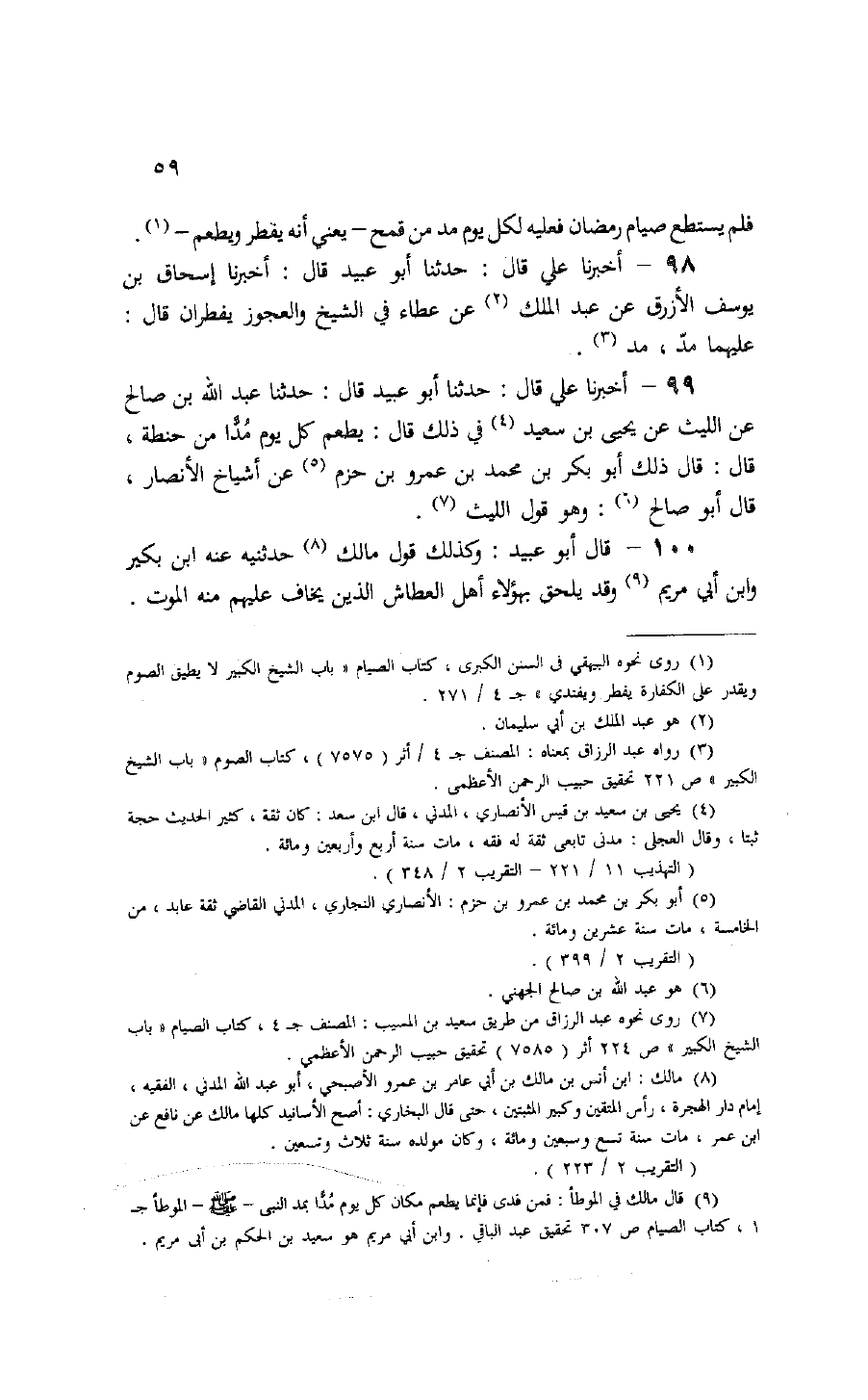 أَخْبَرَنَا عَلِيٌّ قَالَ: حَدَّثَنَا أَبُو عُبَيْدٍ قَالَ: حَدَّثَنَا عَبْدُ اللَّهِ بْنُ صَالِحٍ، عَنِ اللَّيْثِ، عَنْ يَحْيَى بْنِ سَعِيدٍ، فِي ذَلِكَ قَالَ: «يُطْعِمُ كُلَّ يَوْمٍ مُدًّا مِنْ حِنْطَةٍ» قَالَ: قَالَ ذَلِكَ أَبُو بَكْرِ بْنُ مُحَمَّدِ بْنِ عَمْرِو بْنِ حَزْمٍ، عَنْ أَشْيَاخِ الْأَنْصَارِ قَالَ أَبُو صَالِحٍ: وَهُوَ قَوْلُ اللَّيْثِ