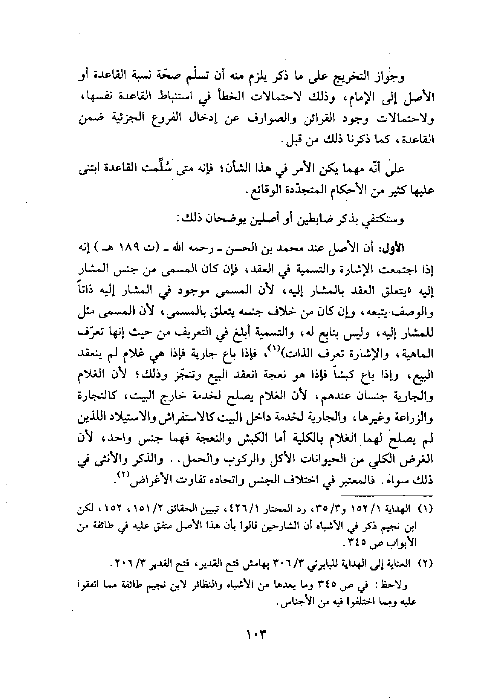 (¬2) العناية إلى الهداية للبابرتي 3/ 306 بهامش فتح القدير، فتح القدير 3/ 206. ولاحظ: في ص 345 وما بعدها من الأشباه والنظائر لابن نجيم طائفة مما اتفقوا عليه ومما اختلفوا فيه من الأجناس.