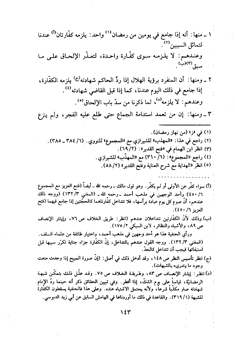 (ب) وذلك لأن الكفارتين تتداخلان عندهم (انظر: طريق الخلاف ص 76، وإيثار الإنصاف ص89، والأشباه والنظائر، لابن السبكي 2/ 175).