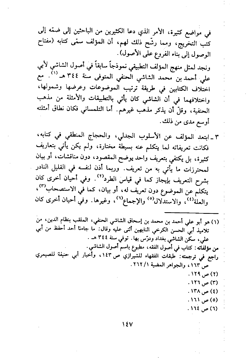 (¬1) هو أبو علي أحمد بن محمد بن إسحاق الشاشي الحنفي، الملقب بنظام الدين، من تلاميذ أبي الحسن الكرخي النابهين أثنى عليه وقال: ما جاءنا أحد أحفظ من أبي علي، سكن الشاشي بغداد ودرس بها توفي سنة 344هـ.