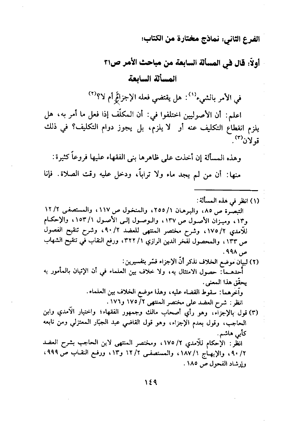 أولاً: قال في المسألة السابعة من مباحث الأمر ص 31