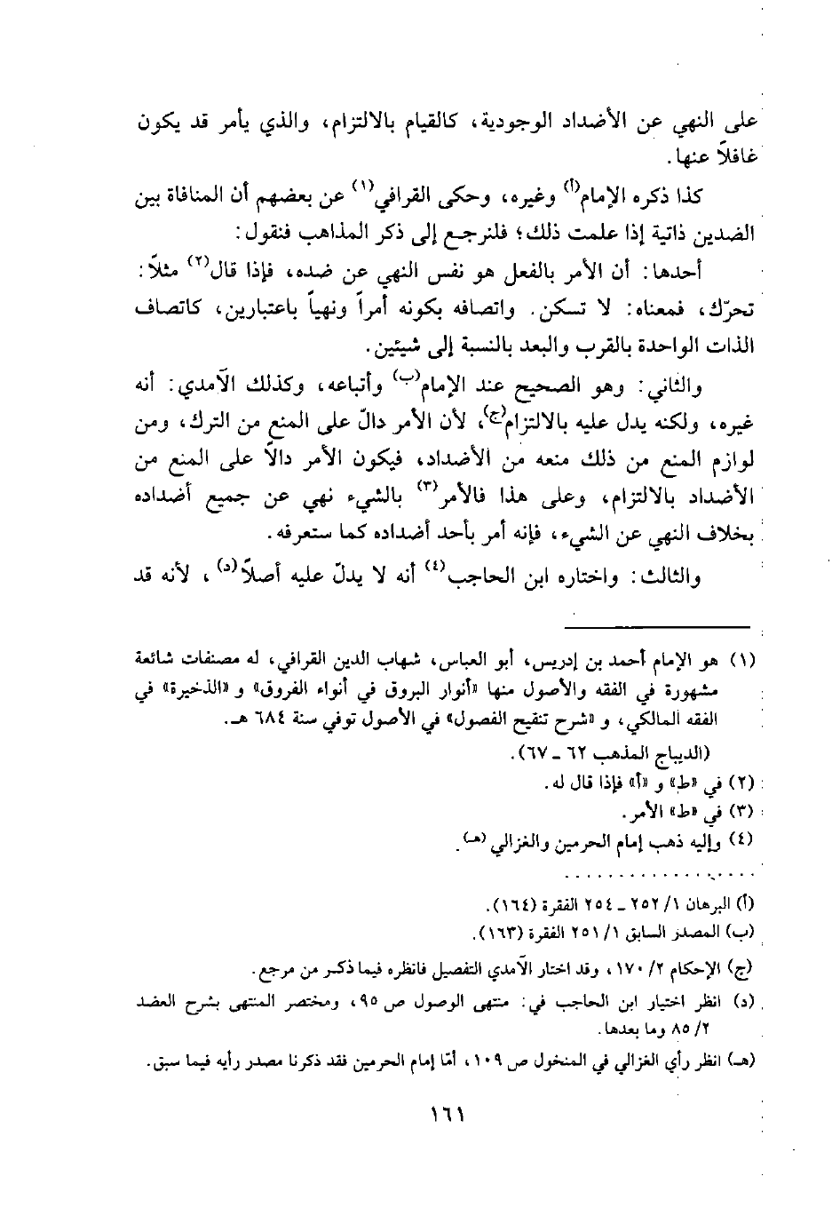 (¬1) هو الإمام أحمد بن إدريس، أبو العباس، شهاب الدين القرافي، له مصنفات شائعة مشهورة في الفقه والأصول منها "أنوار البروق في أنواء الفروق" و"الذخيرة" في الفقه المالكي، و"شرح تنقيح الفصول" في الأصول توفي سنة 684هـ.