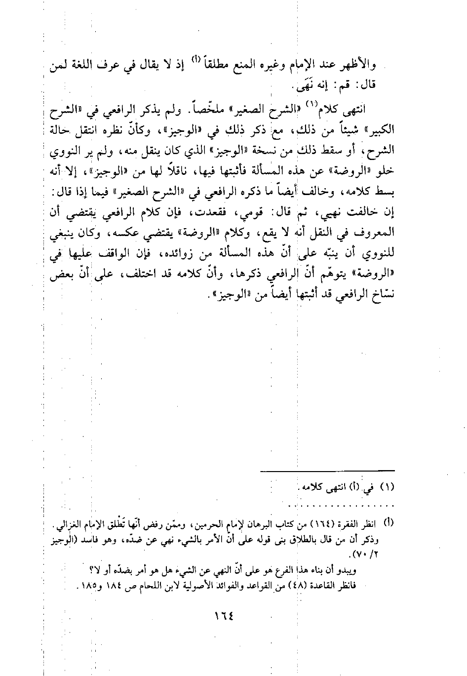 (أ) انظر الفقرة (164) من كتاب البرهان لإمام الحرمين، وممن رفض أنها تطلق الإمام الغزالي. وذكر أن من قال بالطلاق بنى قوله على أن الأمر بالشيء نهي عن ضده، وهو فاسد (الوجيز 2/ 70).
