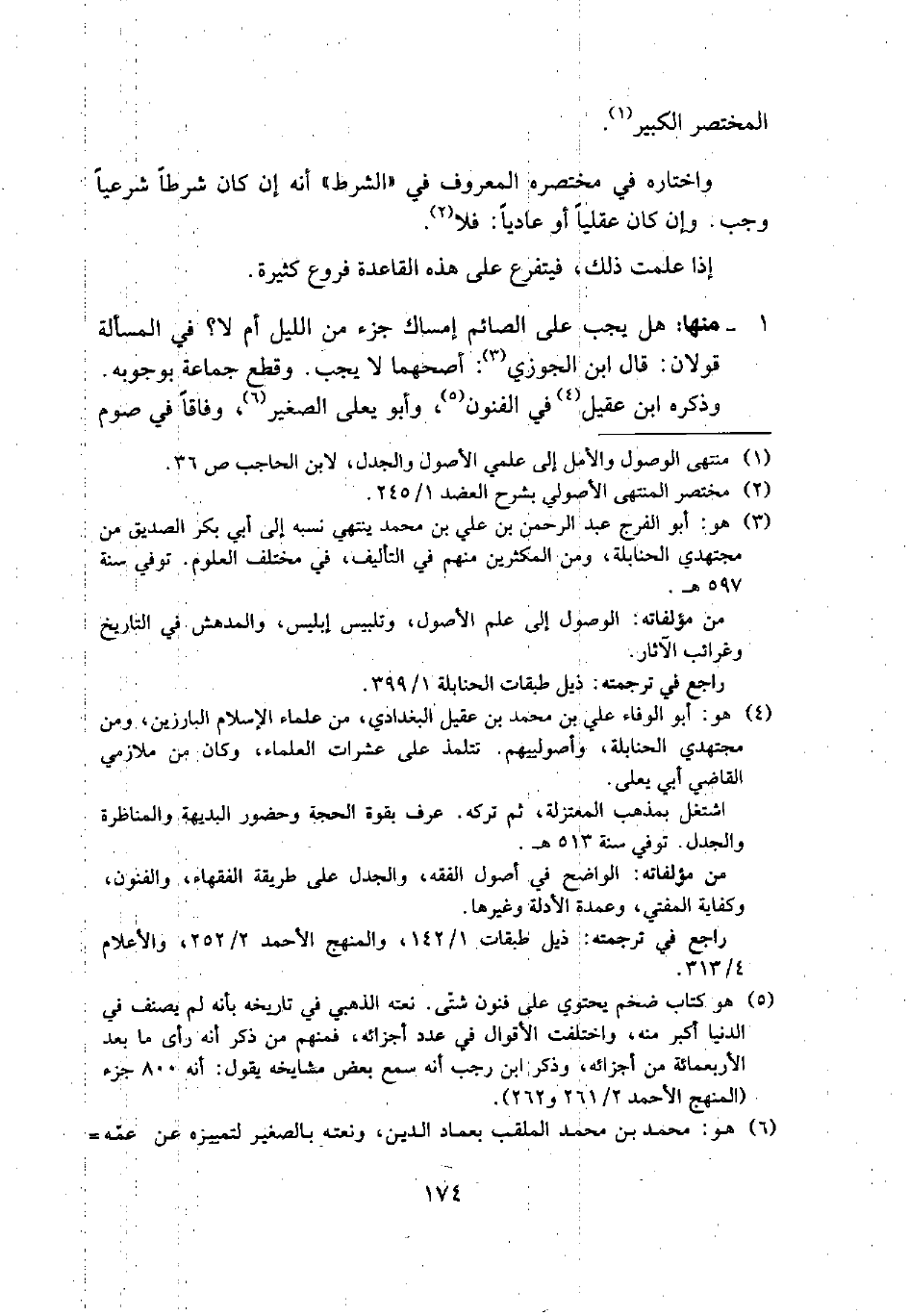 (¬4) هو: أبو الوفاء علي بن محمد بن عقيل البغدادي، من علماء الإسلام البارزين، ومن مجتهدي الحنابلة، وأصولييهم تتلمذ على عشرات العلماء، وكان من ملازمي القاضي أبي يعلي.