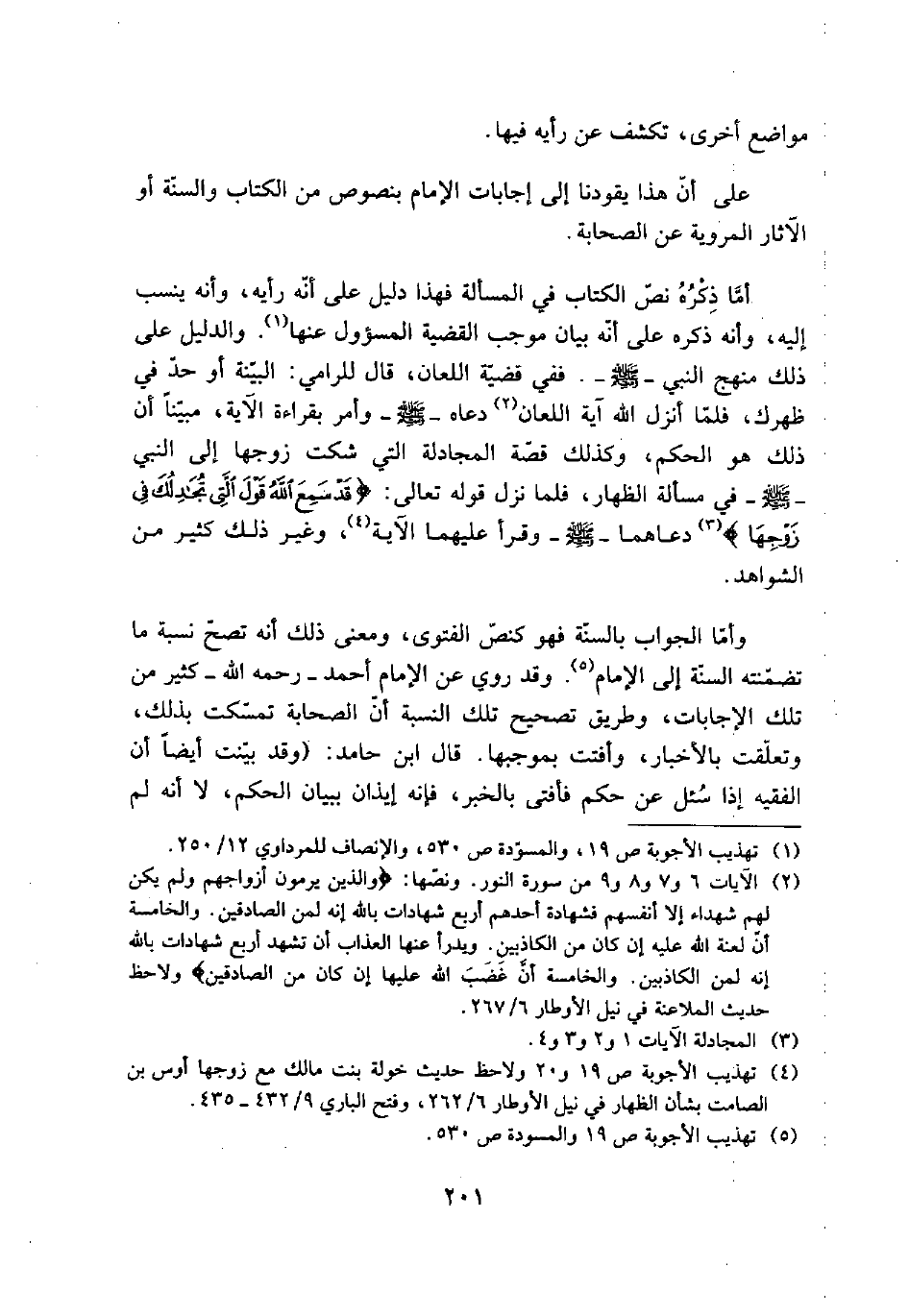 (¬4) تهذيب الأجوبة ص 19و 20 ولاح حديث خولة بنت مالك مع زوجها أوس بن الصامت بشأن الظهار في نيل الأوطار 6/ 262، وفتح الباري 9/ 432 - 435.