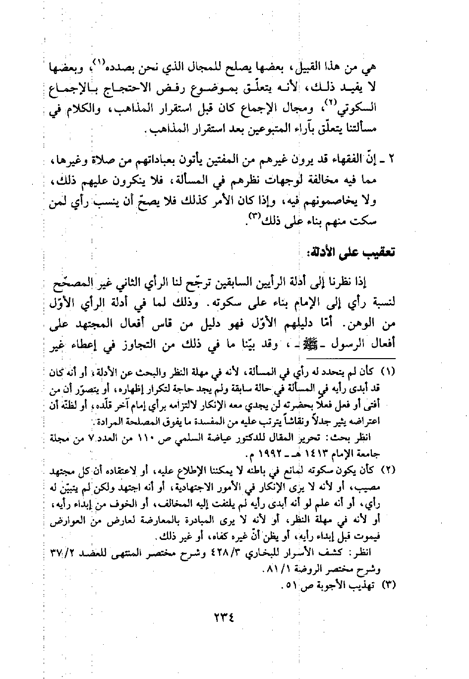 2 - إن الفقهاء قد يرون غيرهم من المفتين يأتون بعباداتهم من صلاة وغيرها، مما فيه مخالفة لوجهات نظرهم في المسألة، فلا ينكرون عليهم ذلك، ولا يخاصمونهم فيه، وإذا كان الأمر كذلك فلا يصح أن ينسب رأي لمن سكت منهم بناء على ذلك (¬3).