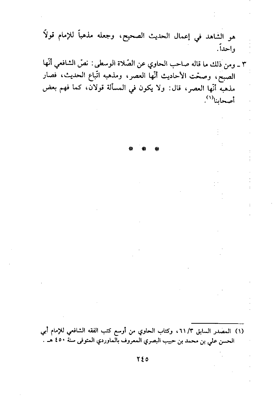 (¬1) المصدر السابق 3/ 61، وكتاب الحاوي من أوسع كتب الفقه الشافعي للإمام أبي الحسن علي بن محمد بن حبيب البصري المعروف بالماوردي المتوفي سنة 450هـ.