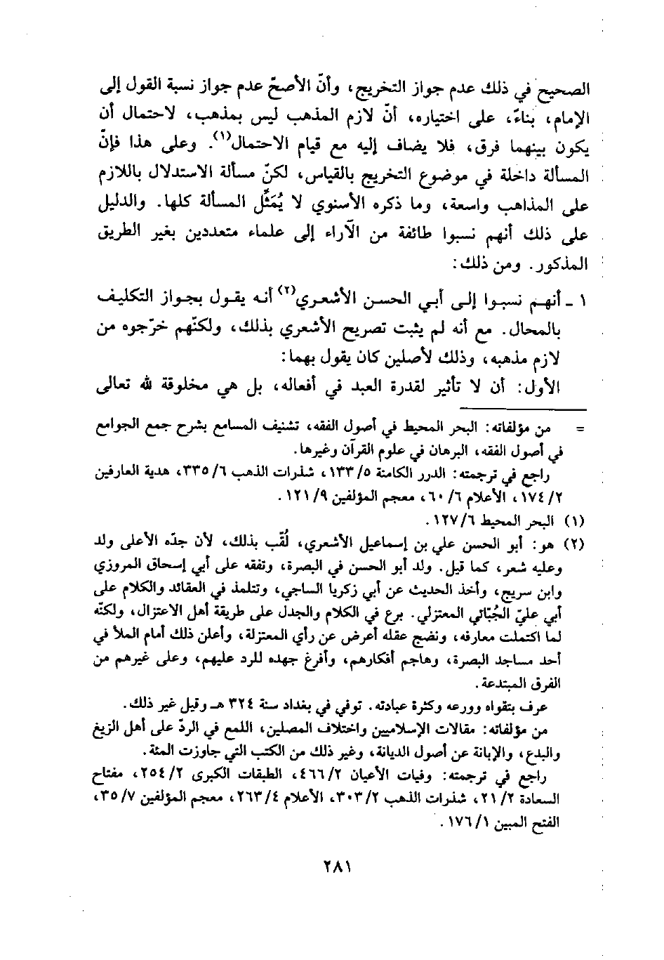 1 - أنهم نسبوا إلى أبي الحسن الأشعري (¬2) أنه يقول بجواز التكليف بالمحال. مع أنه لم يثبت تصريح الأشعري بذلك، ولكنهم خرجوه من لازم مذهبه، وذلك لأصلين كان يقول بهما: