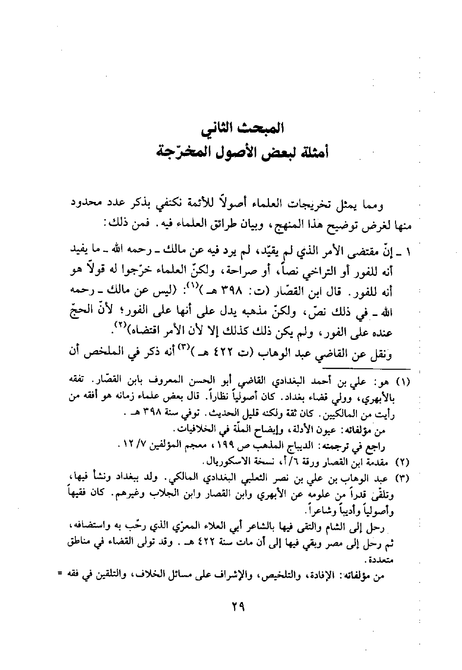 (¬1) هو: علي بن أحمد البغدادي القاضي أبو الحسن المعروف بابن القصار. تفقه بالأبهري، وولي قضاء بغداد. كان أصولياً نظاراً. قال بعض علماء زمانه هو أفقه من رأيت من المالكين. كان ثقة ولكنه قليل الحديث. توفي سنة 398هـ.