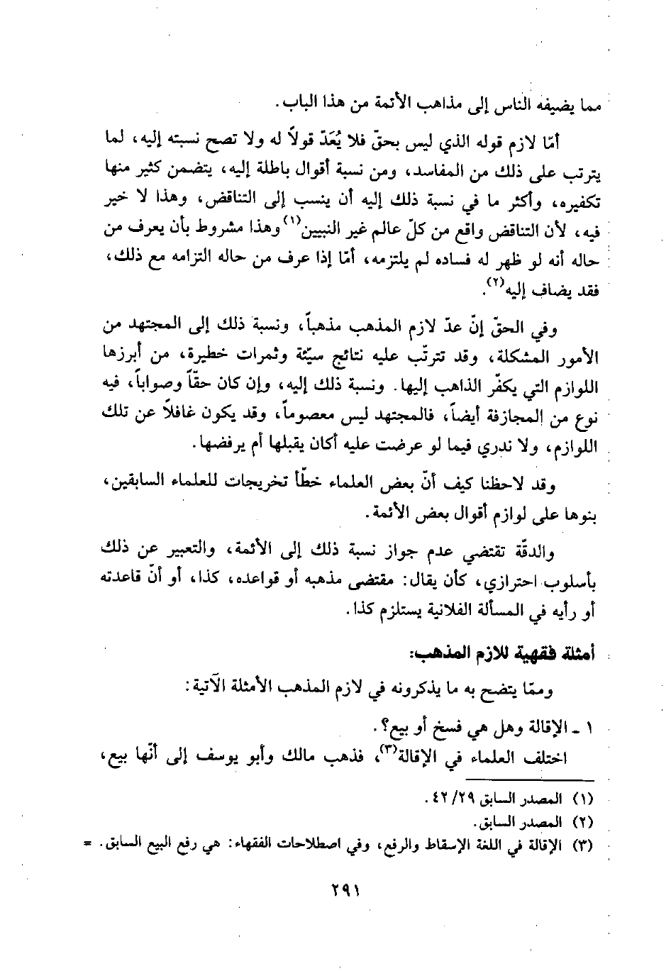ومما يتضح به ما يذكرونه في لازم المذهب الأمثلة الآتية:
