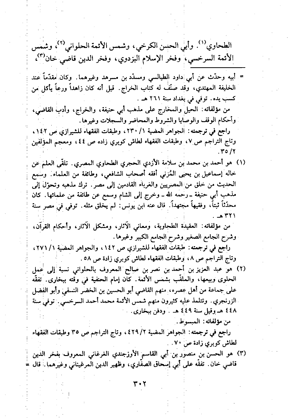 الطحاوي (¬1). وأبي الحسن الكرخي، وشمس الأئمة الحلواني (¬2)، وشمس الأئمة السرخسي، وفخر الإسلام البزدوي، وفخر الدين قاضي خان (¬3)،