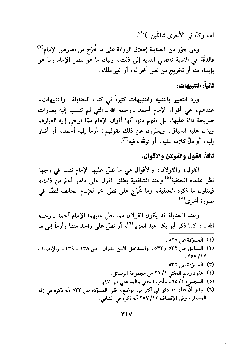 ورد التعبير بالتنبيه والتنبيهات كثيراً في كتب الحنابلة. والتنبيهات، عندهم، هي أقوال الإمام أحمد- رحمه الله- التي لم تنسب إليه بعبارات صريحة دالة عليها، بل يفهم منها أنها أقوال الإمام مما توحي إليه العبارة، ويدل عليه السياق. ويعبرون عن ذلك بقولهم: أومأ إليه أحمد، أو أشار إليه، أو دل كلامه عليه، أو توقف فيه (¬3).