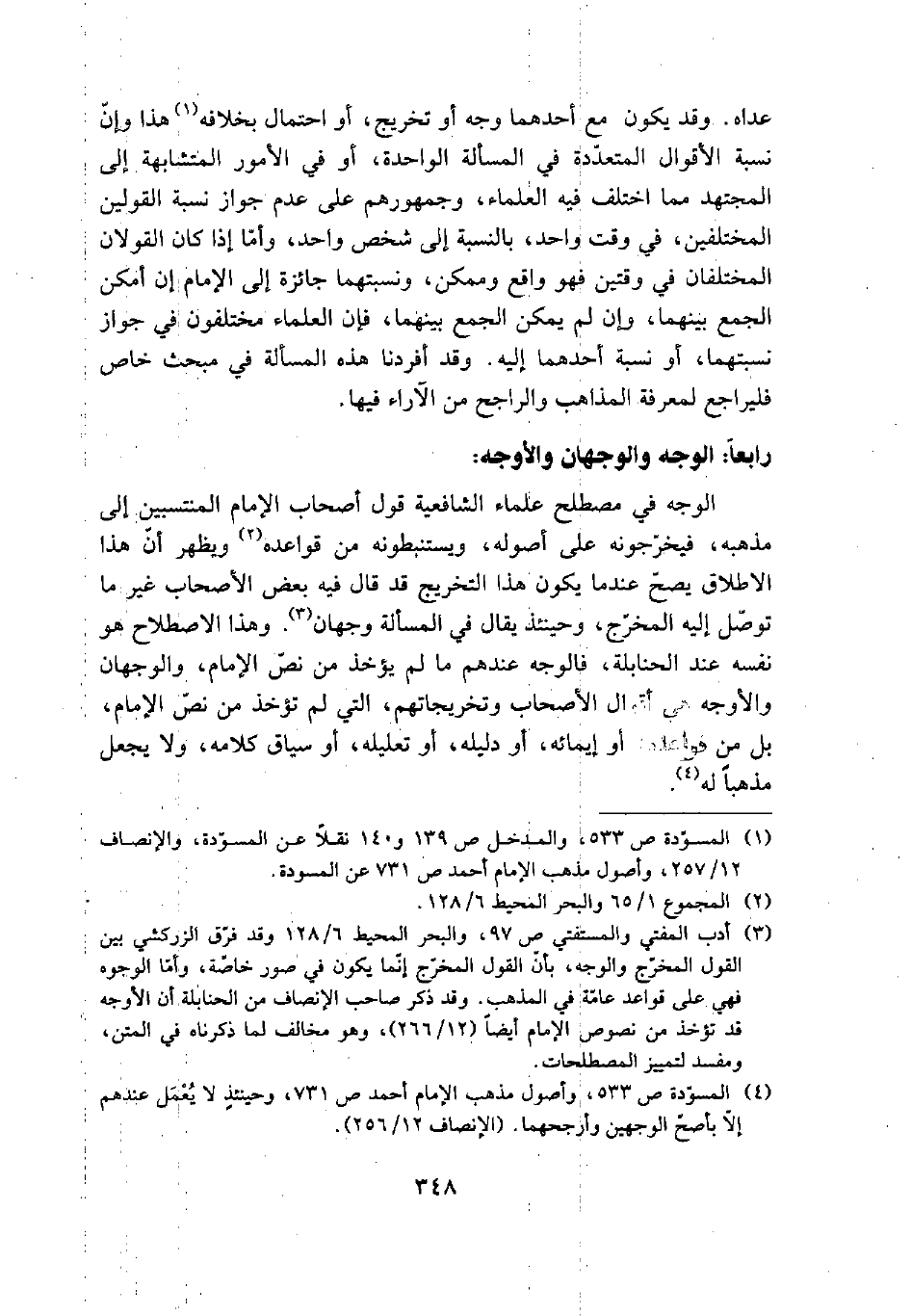 (¬3) أدب المفتي والمستفتي ص 97، والبحر المحيط 6/ 128 وقد فرق الزركشي بين القول المخرج والوجه، بأن القول المخرج إنما يكون في صور خاصة، وأما الوجوه فهي على قواعد عامة في المذهب. وقد ذكر صاحب الإنصاف من الحنابلة أن الأوجه قد تؤخذ من نصوص الإمام أيضاً (12/ 266)، وهو مخالف لما ذكرناه في المتن، ومفسد لتمييز المصطلحات.