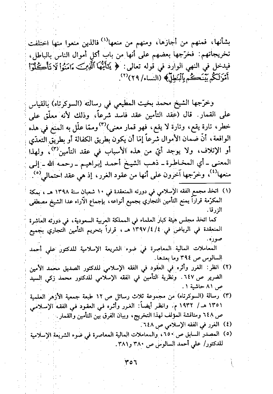 (¬2) انظر: الغرر وأثره في العقود في الفقه الإسلامي للدكتور الصديق محمد الأمين الضرير ص 647. ونظرية التأمين في الفقه الإسلامي للدكتور محمد زكي السيد ص 81 حاشية 1.