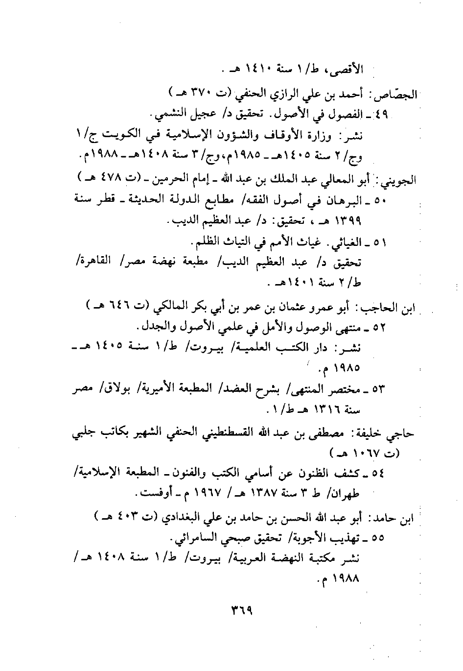 50 - البرهان في أصول الفقه/ مطابع الدولة الحديثة- قطر سنة 1399هـ، تحقيق: د/ عبد العظيم الديب.