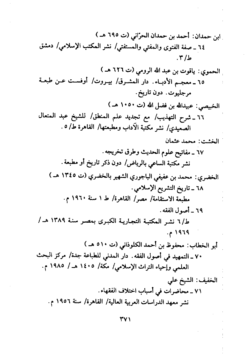 70 - التمهيد في أصول الفقه. دار المدني للطباعة جدة/ مركز البحث العلمي وإحياء التراث الإسلامي/ مكة/ 1405هـ/ 1985م.