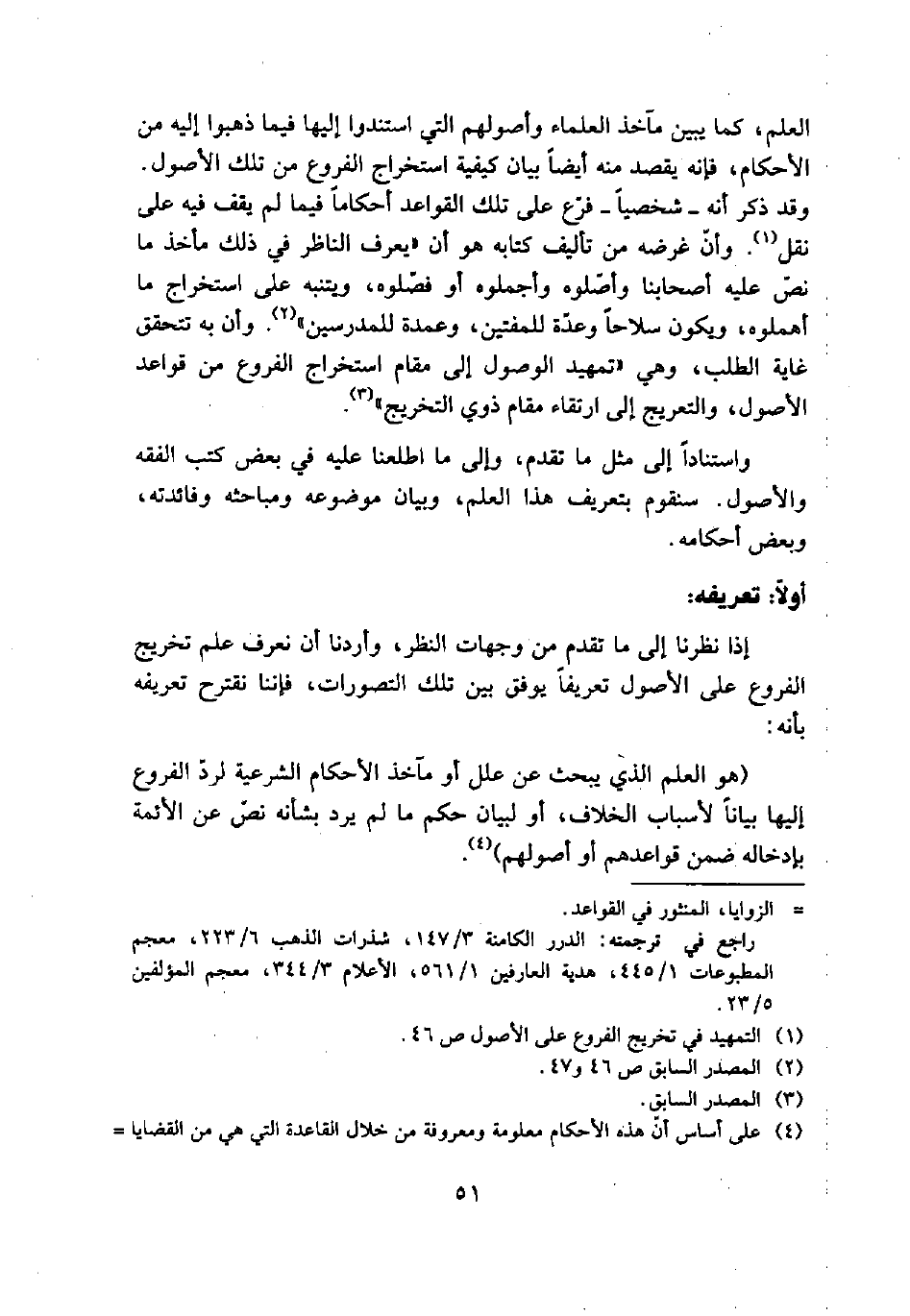 العلم، كما يبين مآخذ العلماء وأصولهم التي استندوا إليها فيما ذهبوا إليه من الأحكام، فإنه يقصد منه أيضاً بيان كيفية استخراج الفروع من تلك الأصول. وقد ذكر أنه – شخصياً – فرع على تلك القواعد أحكاماً فيما لم يقف فيه على نقل (¬1). وأن غرضه من تأليف كتابه هو أن "يعرف الناظر في ذلك مأخذ ما نص عليه أصحابنا وأصلوه وأجملوه أو فصلوه، ويتنبه على استخراج ما أهملوه، ويكون سلاحاً وعدة للمفتين، وعمدة للمدرسين" (¬2). وأن به تتحقق غاية الطلب، وهي "تمهيد الوصول إلى مقام استخراج الفروع من قواعد الأصول، والتعريج إلى ارتقاء مقام ذوي التخريج" (¬3).