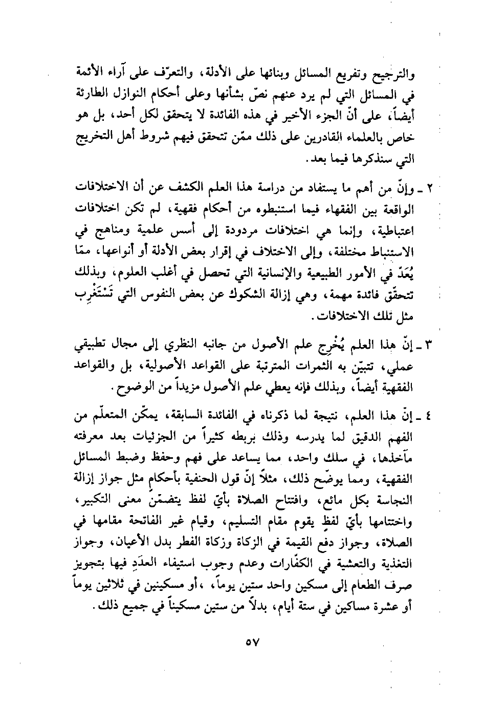 والترجيح وتفريع المسائل وبنائها على الأدلة، والتعرف على آراء الأئمة في المسائل التي لم يرد عنهم نص بشأنها وعلى أحكام النوازل الطارئة أيضاً، على أن الجزء الأخير في هذه الفائدة لا يتحقق لكل أحد، بل هو خاص بالعلماء القادرين على ذلك ممن تتحقق فيهم شروط أهل التخريج التي سنذكرها فيما بعد.