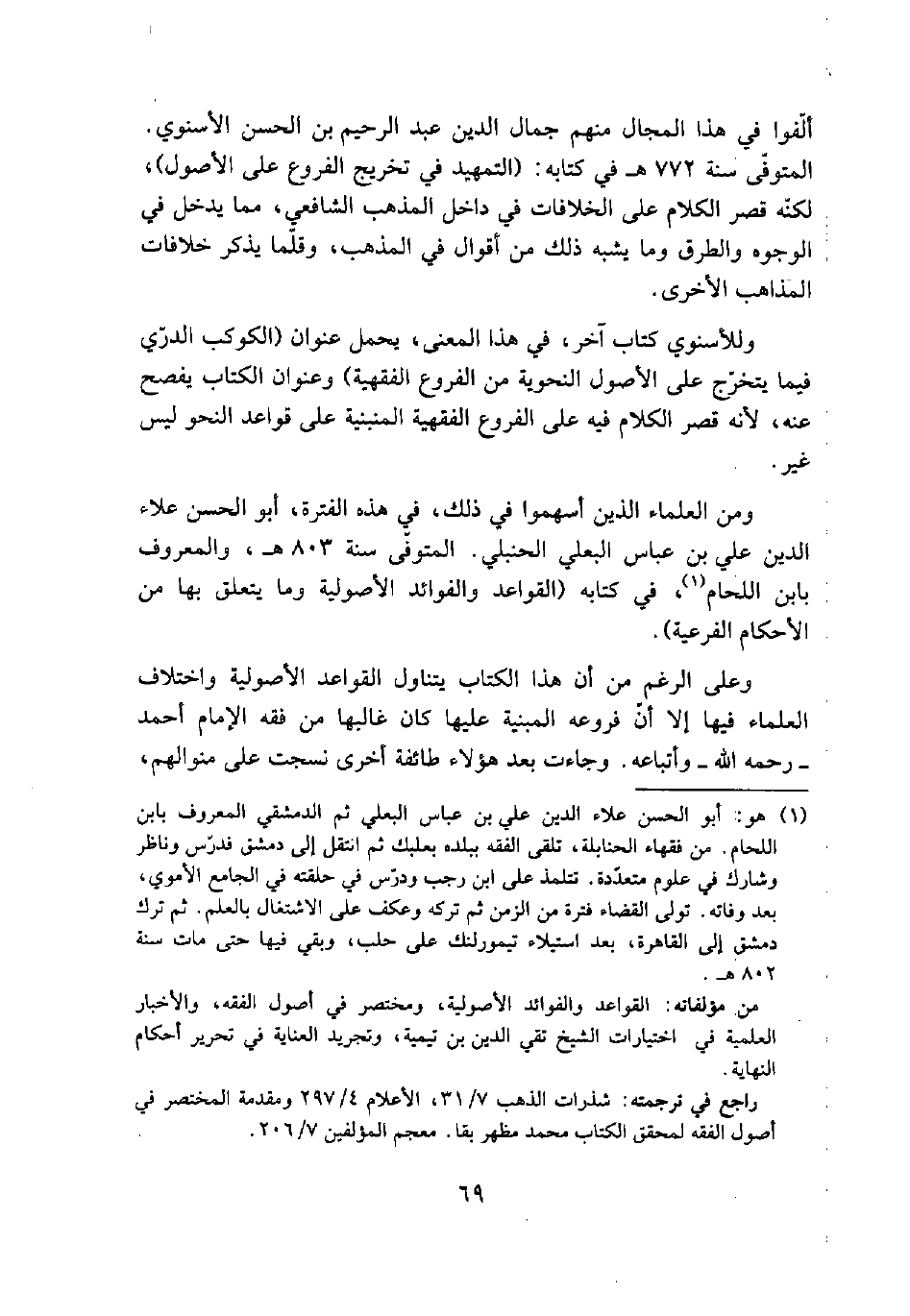 ومن العلماء الذين أسهموا في ذلك، في هذه الفترة، أبو الحسن علاء الدين عي بن عباس البعلي الحنبلي. المتوفى سنة 803هـ، والمعروف بابن اللحام (¬1)، في كتابه (القواعد والفوائد الأصولية وما يتعلق بها من الأحكام الفرعية).