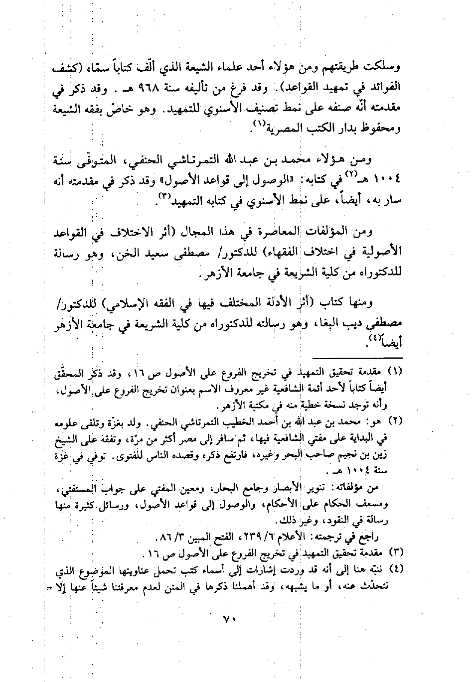 وسلكت طريقتهم ومن هؤلاء أحد علماء الشيعة الذي ألف كتاباً سماه (كشف الفوائد في تمهيد القواعد). وقد فرغ من تأليفه سنة 968هـ. وقد ذكر في مقدمته أنه صنفه على نمط تصنيف الأسنوي للتمهيد. وهو خاص بفقه الشيعة ومحفوظ بدار الكتب المصرية (¬1).