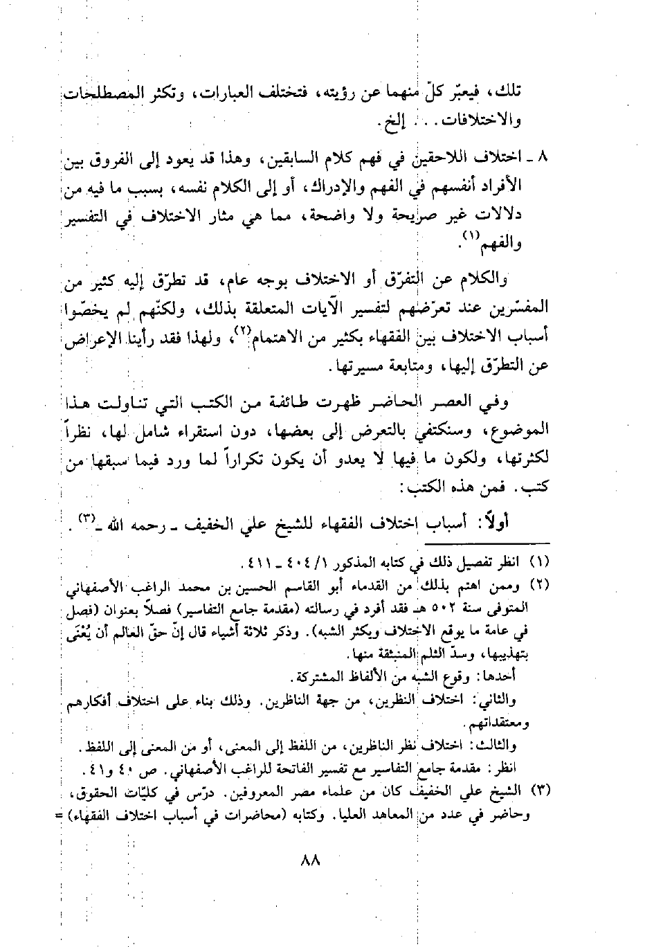 (¬3) الشيخ على الخفيف كان من علماء مصر المعروفين. درس في كليات الحقوق، وحاضر في عدد من المعاهد العليا. وكتابه (محاضرات في أسباب اختلاف الفقهاء) =