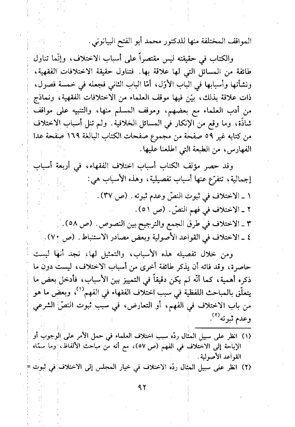 1 - الاختلاف في ثبوت النص وعدم ثبوته (ص 37).