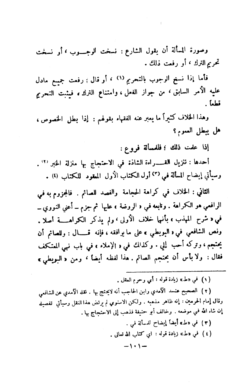 وَصُورَة المسالة أَن يَقُول الشَّارِع نسخت الْوُجُوب أَو نسخت تَحْرِيم التّرْك أَو رفعت ذَلِك
