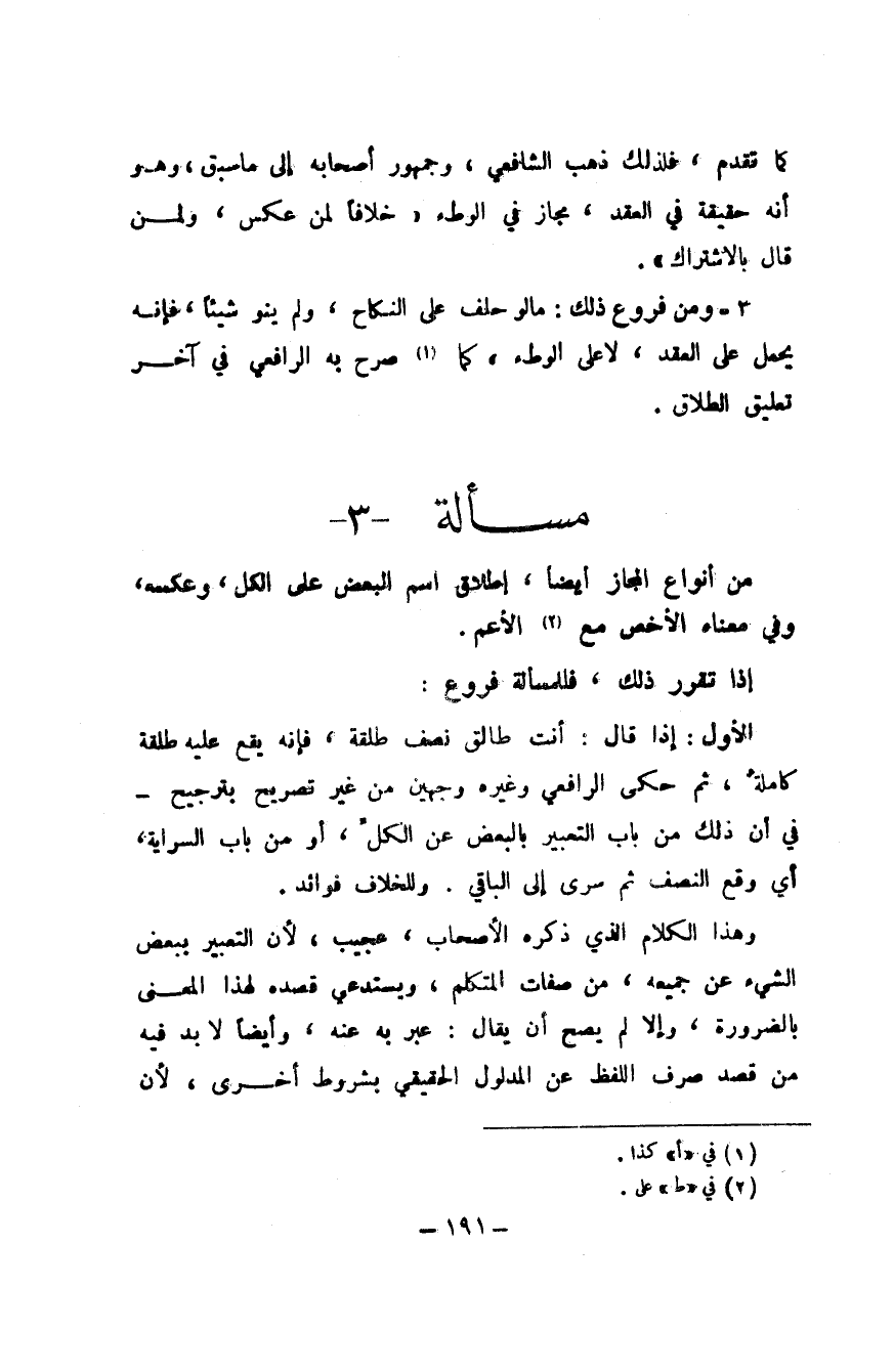 2 - وَمن فروع ذَلِك مالو حلف على النِّكَاح وَلم ينْو شَيْئا فَإِنَّهُ يَجْعَل على العقد لَا على الْوَطْء كَمَا صرح بِهِ الرَّافِعِيّ فِي آخر تَعْلِيق الطَّلَاق